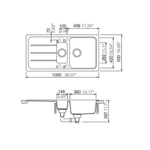 IN STOCKFREE NEXT DAY DELIVERYDimensionsLength (Left to Right) - 1000mmWidth (Front to Back) - 500mmDepth (Top to Bottom) - 298mmMain Bowl Size (Le...