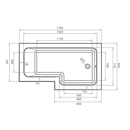 L-Shaped Bath Clovelly Standard Acrylic 1700x850mm Right Hand FREE NEXT DAY DELIVERYDIMENSIONS 1700x850mmPanel and waste and trap options to comple...
