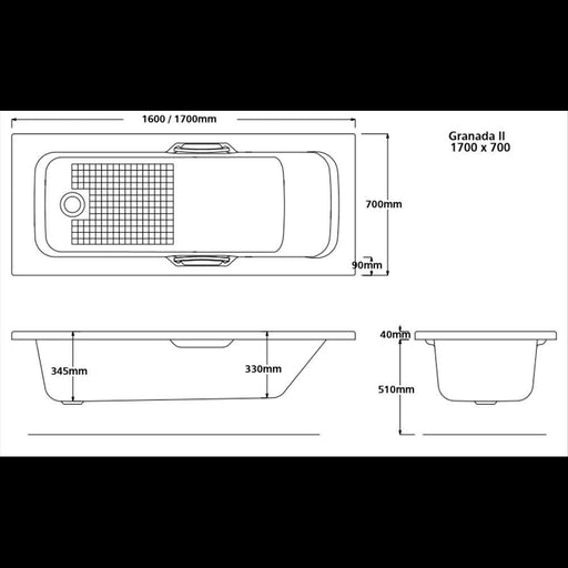Bath with Twin Grips 1700x700mm Northam Standard 5mm Acrylic FREE NEXT DAY DELIVERYDIMENSIONS 1700 x 700Panel and waste and trap can be bought sepa...