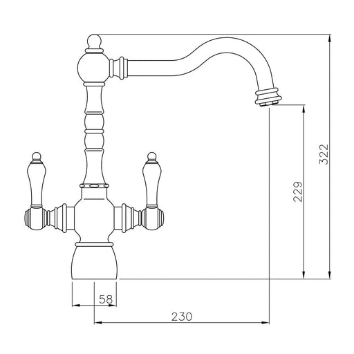 DimensionsHeight - 393mmTap Hole Diameter - 45mmSpout Reach - 229mmSpout Height - 262mmProduct FeaturesStyle - TraditionalColour - ChromeFinish - P...