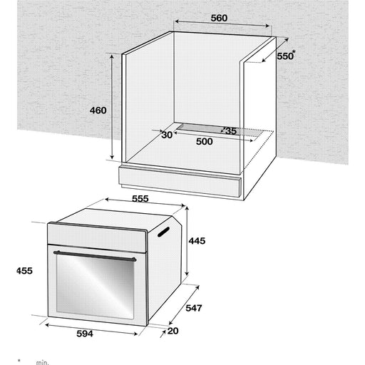 Dimensions Length (Left to Right) - 1000mm Width (Front to Back) - 500mm Depth (Top to Bottom) - 314mm Minimum Cabinet Size - 600mm Cutout Dimens...